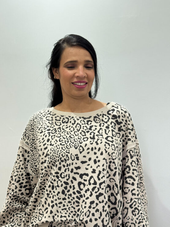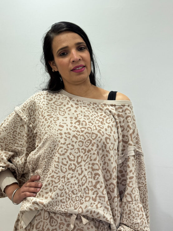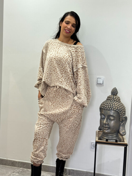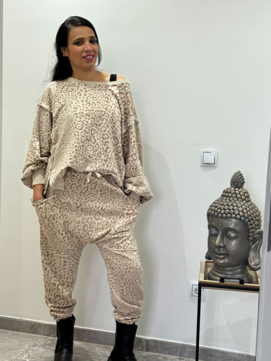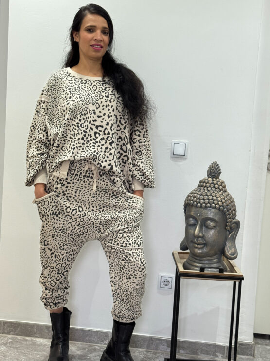 Anzug Leo Optik Hose mit verstellbaren Bund, und extra tiefen Eingriffs Taschen und Oversized Shirt mit Schlicht