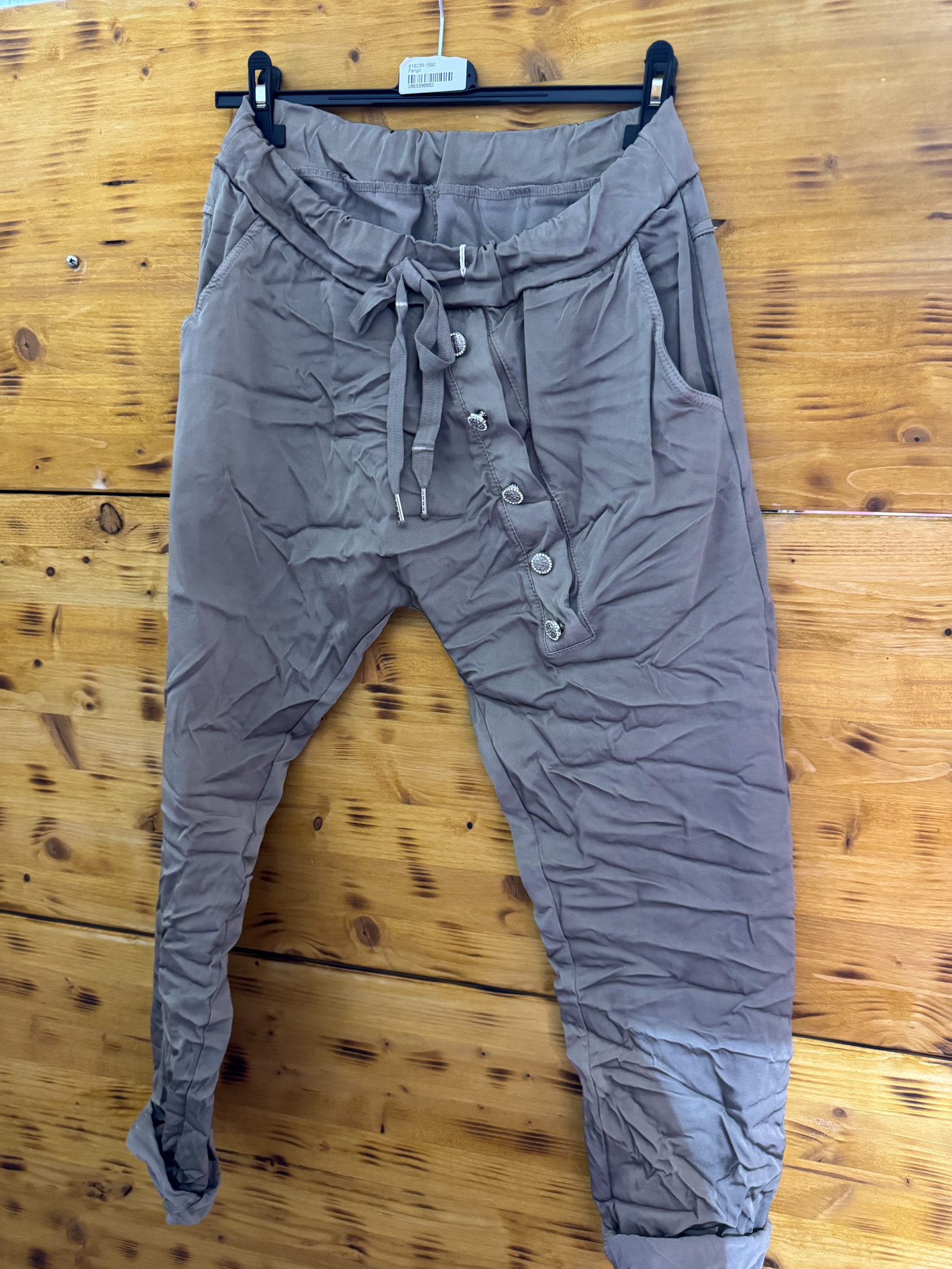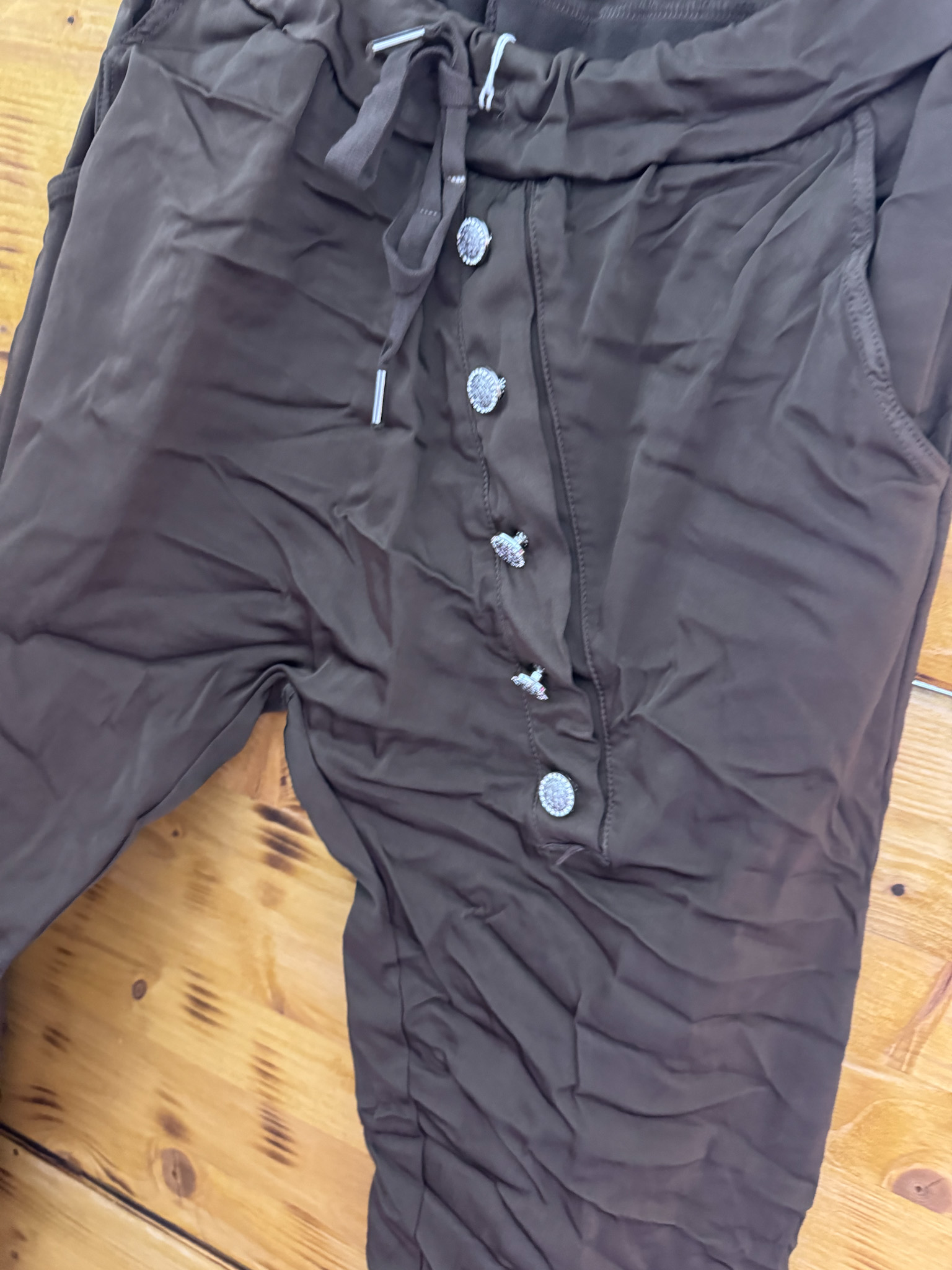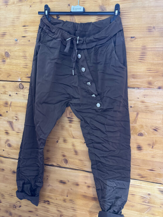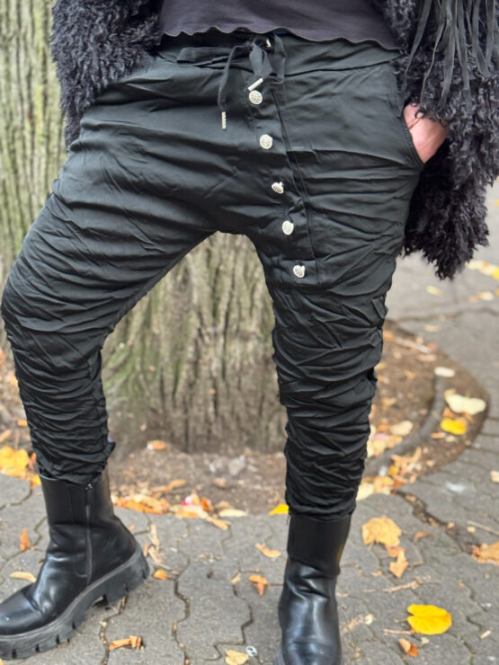 Harems Hose in Glanz Optik mit verstellbaren Bund und Zier Knöpfen vorne, Eingriff Taschen vorne und hinten