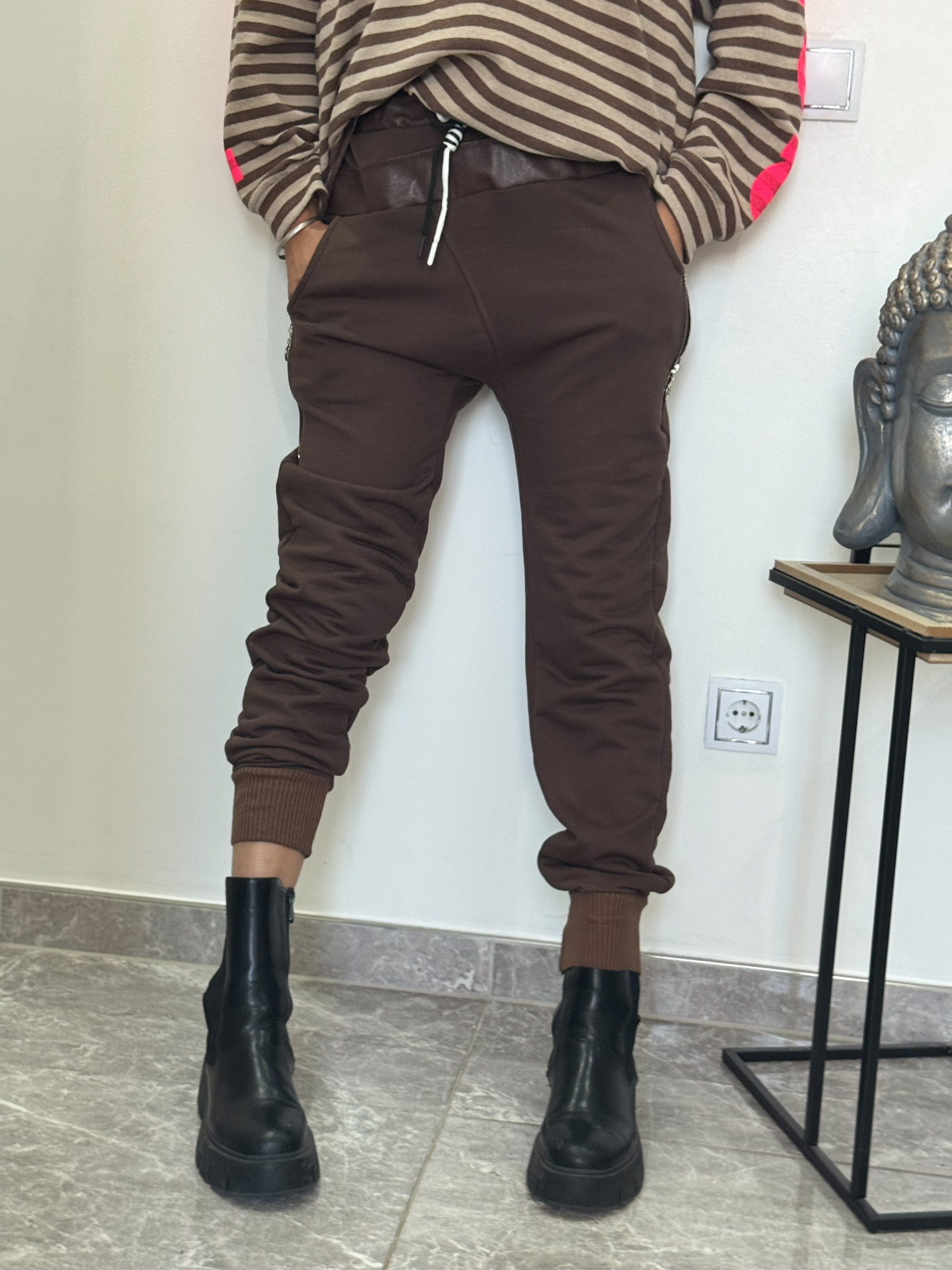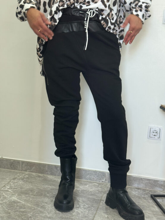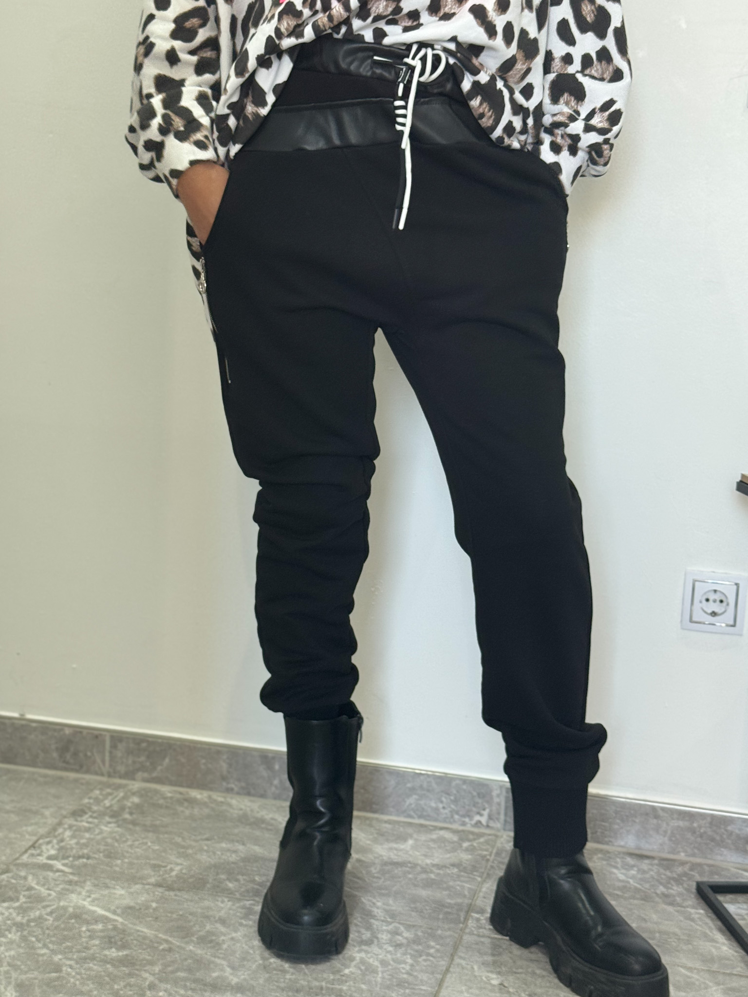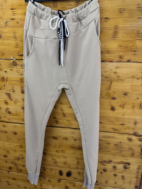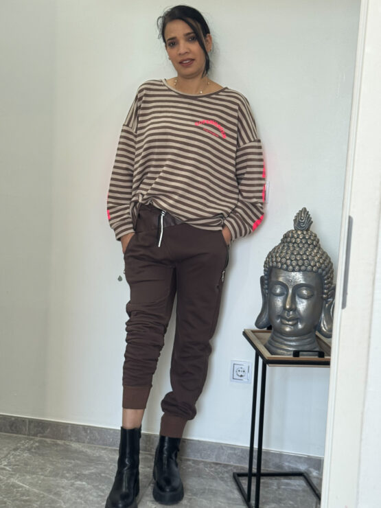 Schlupf Hose mit rundum Gummibund, an den Taschen mit Zier Reisverschlussen , im unteren Bereich mit Bündchen