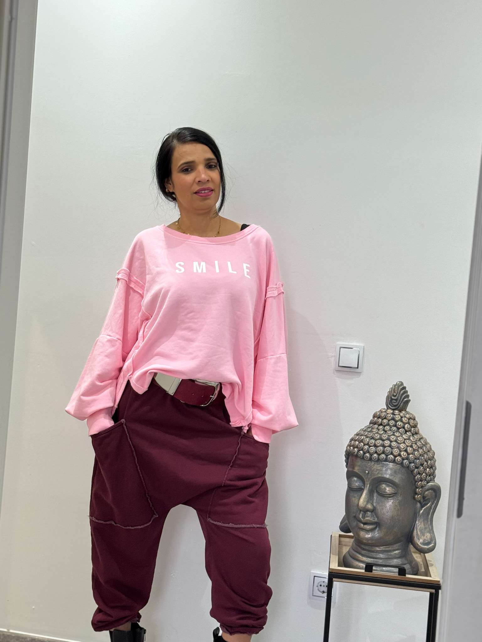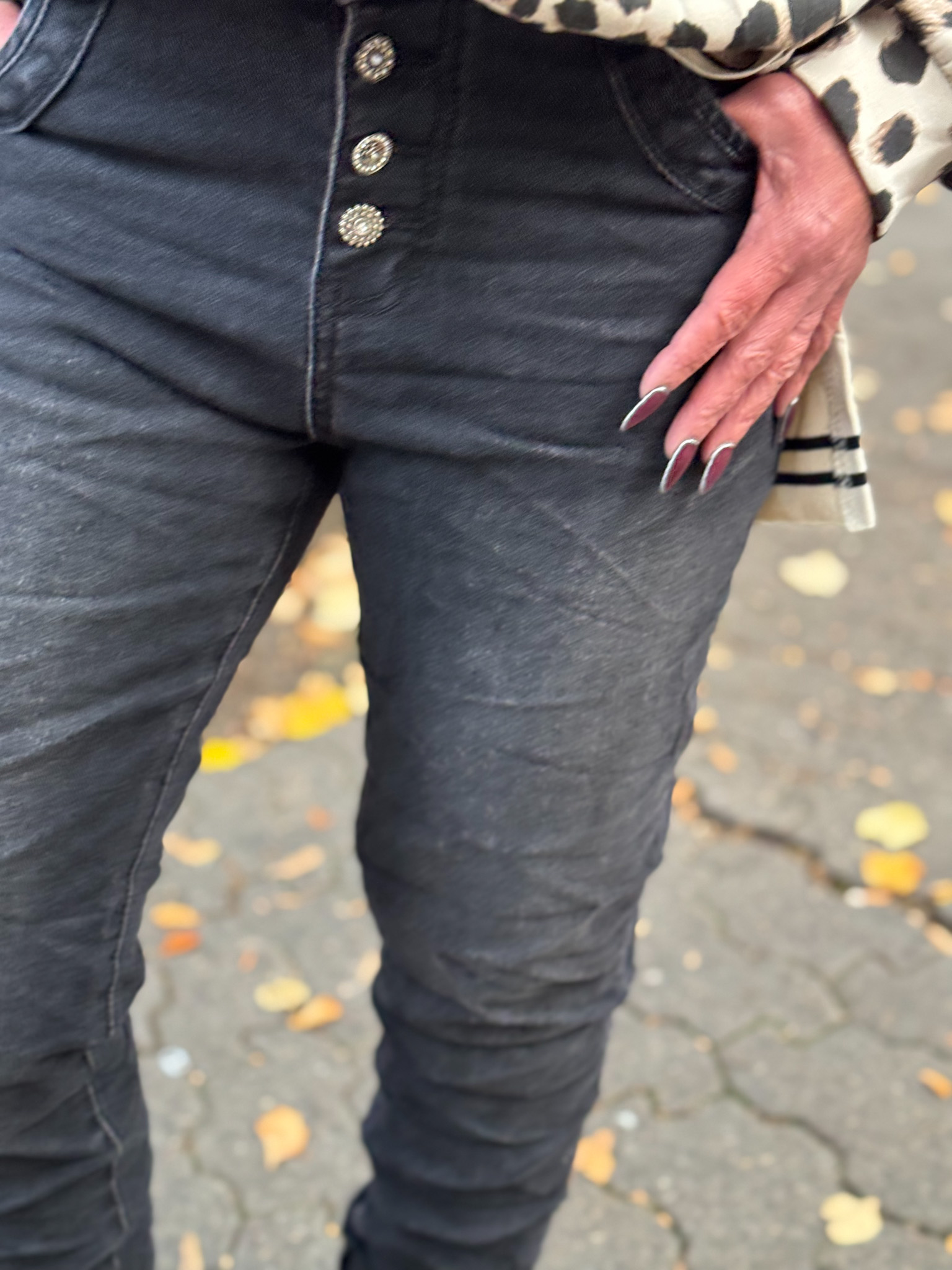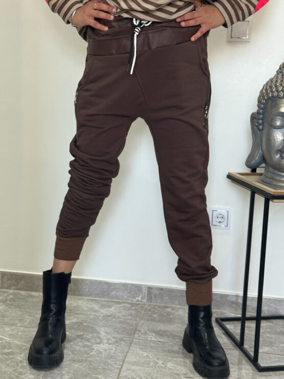 Schlupf Hose mit rundum Gummibund, an den Taschen mit Zier Reisverschlussen , im unteren Bereich mit Bündchen