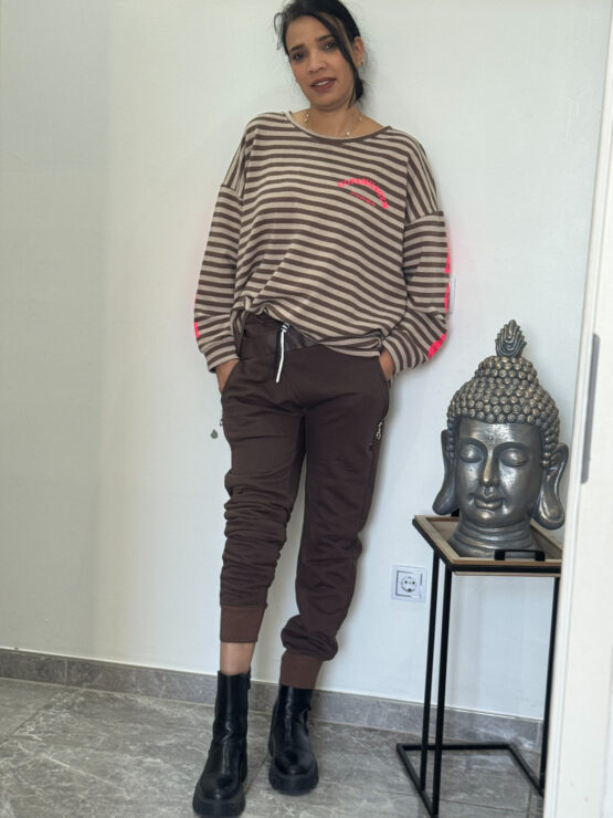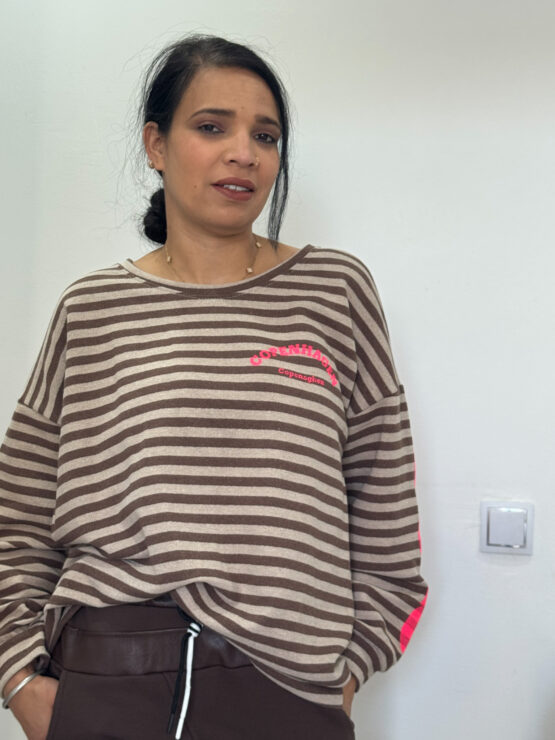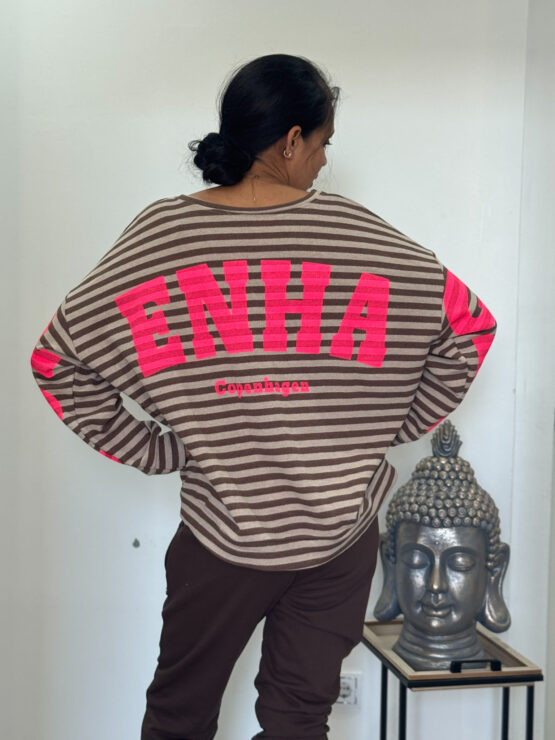 Streifen Sweatshirt mit Rundhals Ausschnitt und langen Ärmel, auf dem Rücken mit Schriftzug Design