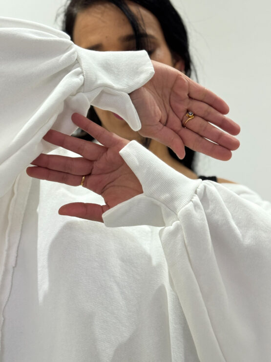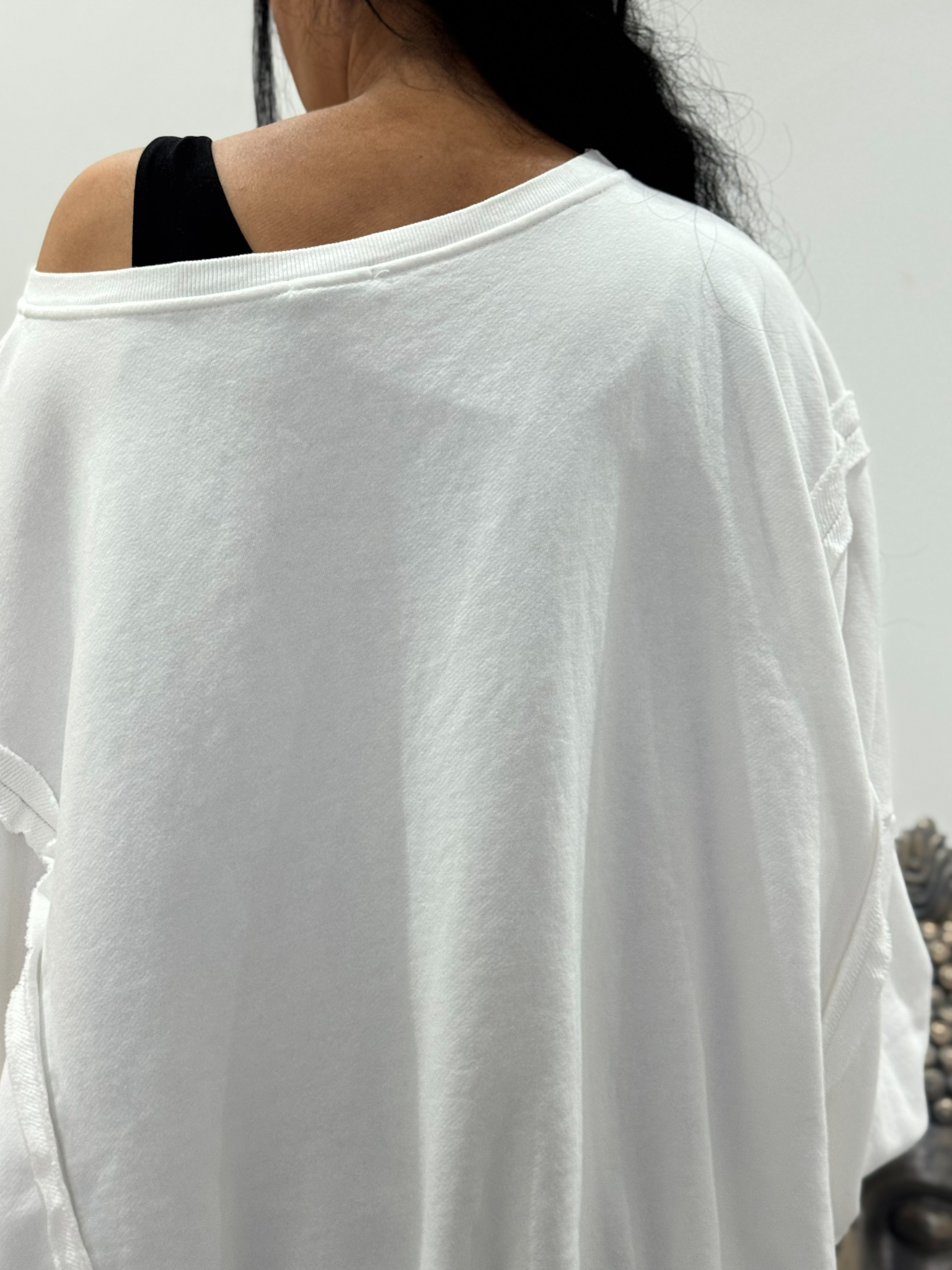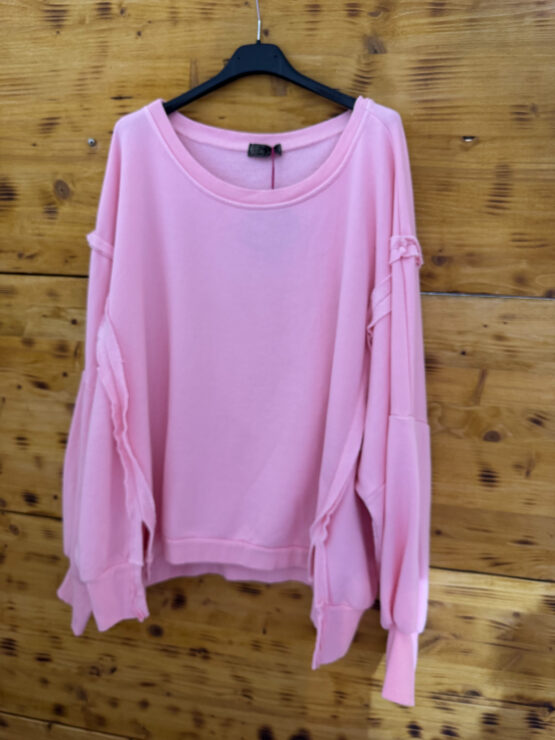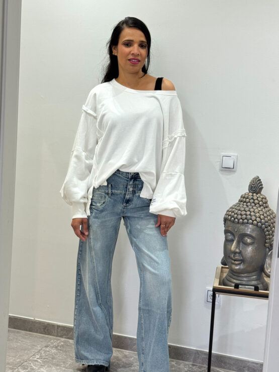 Oversized Shirt r mit langen Ärmeln mit Schlitzen an der Seite und den gedräten Nähten.